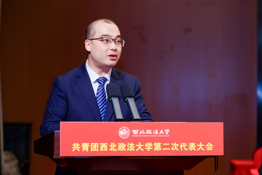 郭武軍代表學(xué)校黨委向大會(huì)的召開(kāi)表示熱烈祝賀,向長(zhǎng)期以來(lái)關(guān)心和支持學(xué)校共青團(tuán)工作的共青團(tuán)陜西省委、省教育團(tuán)工委以及兄弟院校表示感謝,并充分肯定了學(xué)校各級(jí)團(tuán)組織團(tuán)結(jié)帶領(lǐng)廣大團(tuán)員青年取得的成績(jī)和貢獻(xiàn)。他強(qiáng)調(diào)西法大青年要堅(jiān)定理想信念,樹(shù)立報(bào)國(guó)之志,以昂揚(yáng)之姿馳騁青春賽道;要傳承紅色基因,涵養(yǎng)浩然之氣,以擔(dān)當(dāng)之勇砥礪前行之路;要勇立時(shí)代前沿,提升創(chuàng)新之能,以進(jìn)取之心探索未知領(lǐng)域;要時(shí)刻牢記以人民為中心,踐行法治精神,在中國(guó)式現(xiàn)代化建設(shè)中挺膺擔(dān)當(dāng)。