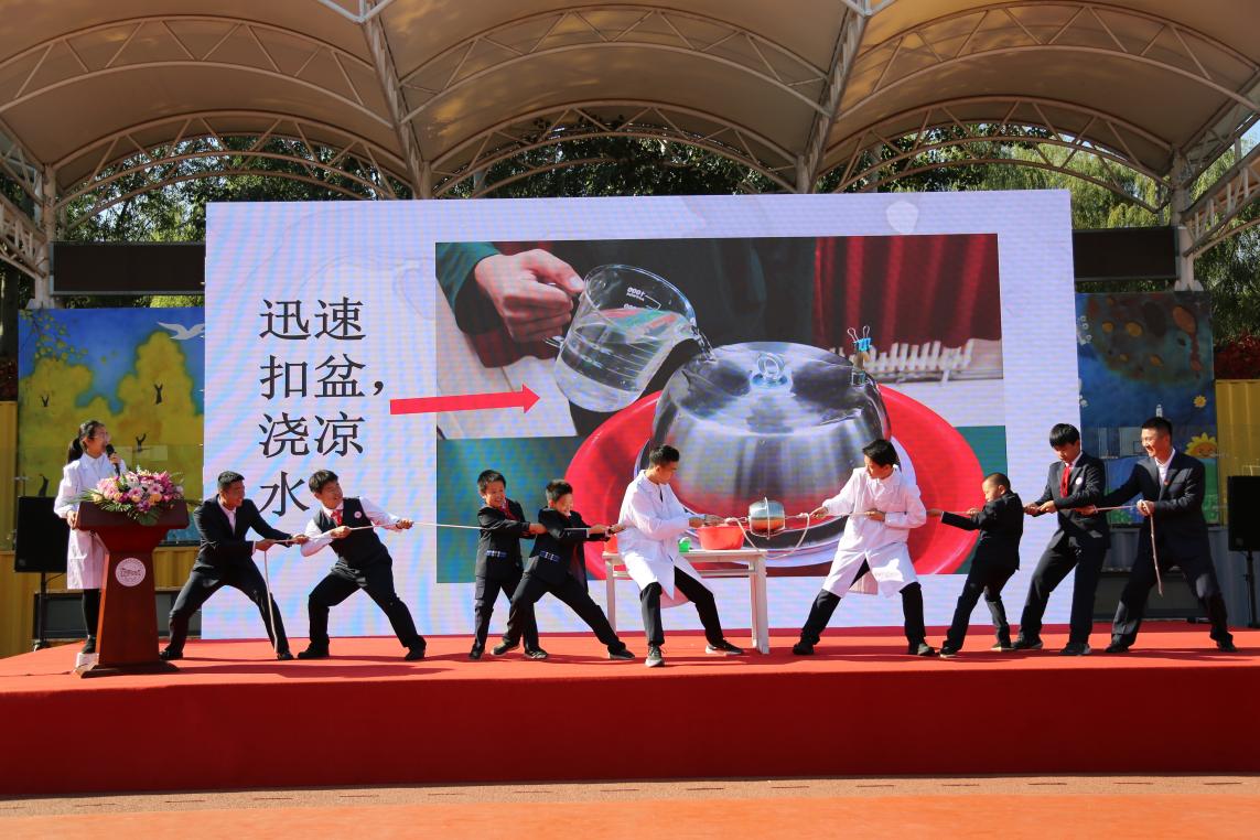 這場(chǎng)嘉年華啟動(dòng)儀式上,中小學(xué)科技課程、科技戲劇、人工智能展演成為了焦點(diǎn),從奮力沖上蒼穹的“水火箭”,到馬德堡半球?qū)嶒?yàn)的再現(xiàn),再到機(jī)器人的舞蹈表演,每一個(gè)科學(xué)實(shí)驗(yàn)都在孩子們歡喜的尖叫聲中揭開(kāi)神秘面紗。參加科學(xué)實(shí)驗(yàn)展演的孩子們個(gè)個(gè)眼光中充滿了自信和希望,沉著冷靜、默契配合,詮釋科學(xué)實(shí)驗(yàn)、科學(xué)反應(yīng)、科學(xué)原理或科研創(chuàng)新成果及技術(shù)。