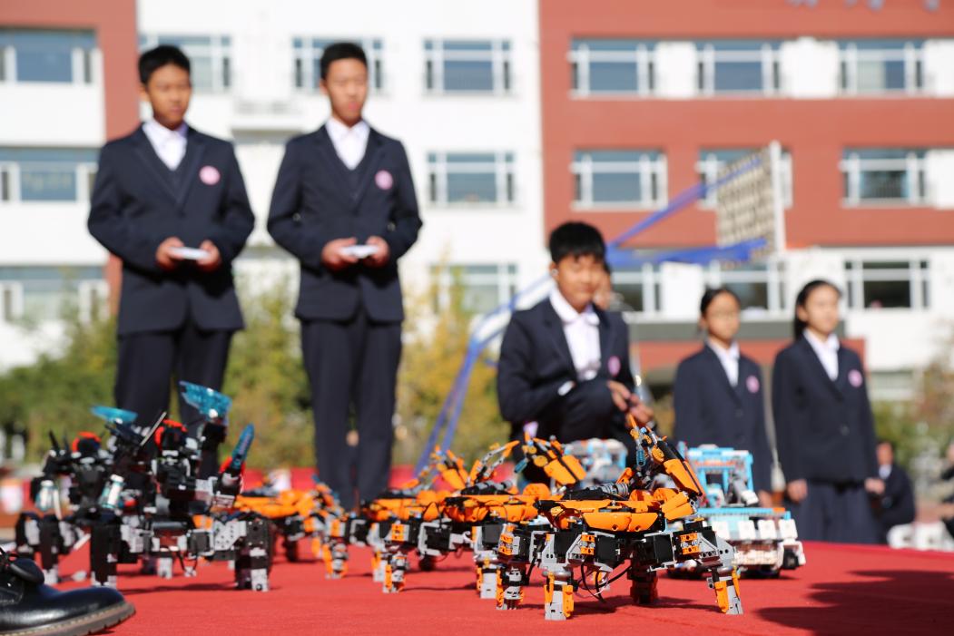 (將府學(xué)校人工智能社團(tuán)學(xué)生進(jìn)行機(jī)器人舞蹈展示)