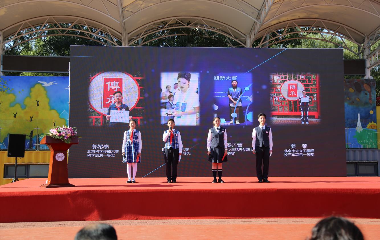 活動(dòng)現(xiàn)場(chǎng),分別獲得2021年第三屆北京科學(xué)傳播大賽中榮獲科學(xué)表演團(tuán)體一等獎(jiǎng)、2023年北京市未來(lái)工程師競(jìng)賽小學(xué)組一等獎(jiǎng)、2022年世界機(jī)器人大賽總決賽挑戰(zhàn)賽一等獎(jiǎng)、2023全國(guó)青少年航天創(chuàng)新大賽二等獎(jiǎng)的四名學(xué)生代表郭希泰、劉嘉樂(lè)、秦丹蕾、姜萊,分享了參加科技活動(dòng)的經(jīng)歷與心得體會(huì)。“每周兩節(jié)的科學(xué)課點(diǎn)燃了我們的太空夢(mèng)”“在一次次賽前集訓(xùn)中,通過(guò)老師帶領(lǐng)我們查找資料、研究原理、設(shè)計(jì)作品等動(dòng)手實(shí)踐活動(dòng),我提高了綜合運(yùn)用知識(shí)的能力和創(chuàng)造性解決問(wèn)題的能力”“曾經(jīng)基礎(chǔ)科學(xué)知識(shí)薄弱的我,各種提問(wèn)占用老師很多時(shí)間,老師卻總是表?yè)P(yáng)我虛心求教的態(tài)度”“在討論比賽項(xiàng)目時(shí),我們?cè)谙嗷ヌ釂?wèn)中碰撞思維的火花,我學(xué)會(huì)了如何傾聽(tīng)、如何溝通”……學(xué)生們認(rèn)為,他們科學(xué)興趣的激發(fā)、科學(xué)探究能力的提升、科技實(shí)踐能力的強(qiáng)化、科技探索之路的開(kāi)啟,離不開(kāi)學(xué)校豐富的科技教育課程、科技競(jìng)賽平臺(tái)的搭建、老師的悉心教導(dǎo)與鼓勵(lì)、小組的合作探究。