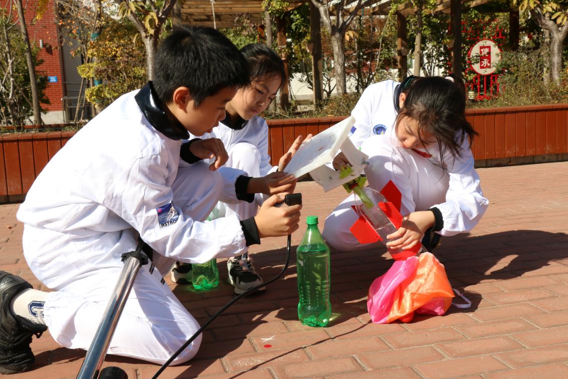 10月27日,一艘艘“水火箭”在北京市朝陽(yáng)區(qū)將府實(shí)驗(yàn)學(xué)校(以下簡(jiǎn)稱將府學(xué)校)操場(chǎng)北側(cè)凌空飛起,孩子們的航天夢(mèng)、科技?jí)粢搽S之起飛……