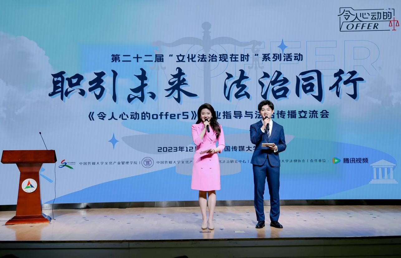 為更好地落實國家憲法日暨全國法制宣傳日要求,12月2日下午,由中國傳媒大學(xué)文化產(chǎn)業(yè)管理學(xué)院、中國傳媒大學(xué)文化產(chǎn)業(yè)管理學(xué)院文化法治研究中心與中國傳媒大學(xué)法律協(xié)會聯(lián)合主辦的第二十二屆“文化法治現(xiàn)在時”開幕式暨《令人心動的offer5》職業(yè)指導(dǎo)與法治傳播交流會在中國傳媒大學(xué)成功舉辦。中國傳媒大學(xué)黨委副書記李眾出席本次活動。