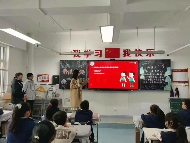 在西安市曲江第十四小學(xué),法律服務(wù)中心學(xué)生志愿者組成的11支普法小組為三、四、五年級(jí)的學(xué)生們進(jìn)行了一場(chǎng)趣味“法律啟蒙”。面對(duì)充滿童趣的小學(xué)生,志愿者們通過(guò)講解PPT、組織學(xué)生觀看法治小視頻、設(shè)置互動(dòng)問(wèn)答的形式將復(fù)雜的法律知識(shí)簡(jiǎn)單化,以趣味性的方式傳授給孩子們。學(xué)生們競(jìng)相舉手,積極地回答問(wèn)題,整個(gè)教室充滿了歡聲笑語(yǔ)。