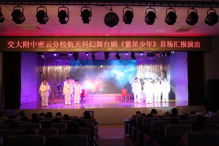 科技是興國之源,教育是立國之本。為進(jìn)一步提高科學(xué)教育意識(shí)和學(xué)生科學(xué)素養(yǎng),交大附中密云分?;I備半年的“鑄飛天夢想 促幸福成長”航天科幻舞臺(tái)劇《紫星少年》在2024年1月18日首演。北京市密云區(qū)各級領(lǐng)導(dǎo)及各中學(xué)書記、校長參加了活動(dòng)。