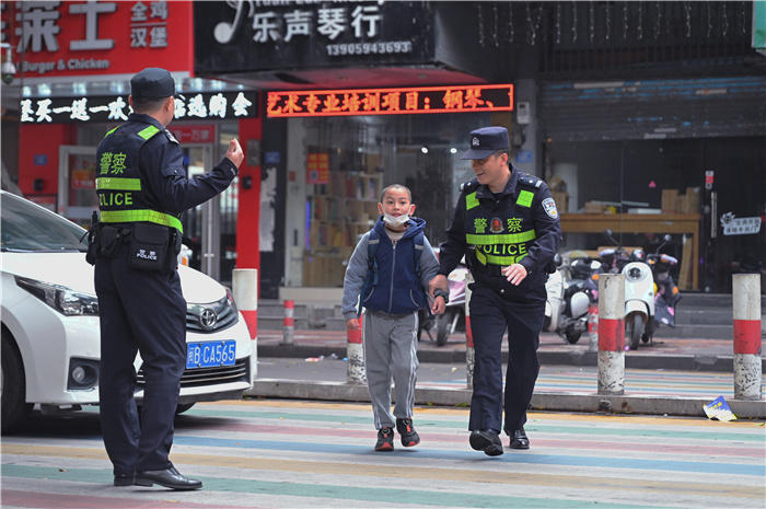 “同學們,請排隊有序通過,不要相互推擠。”在莆田市實驗小學門口,身穿紅馬甲的家長志愿者,戴紅袖標的學校工作人員,警容嚴整的執(zhí)勤民警各司其職,他們在校門口積極開展交通引導、護送學生安全通過斑馬線、勸導違停車輛忙碌的身影,總是讓家長和孩子們倍感溫暖和安心。
