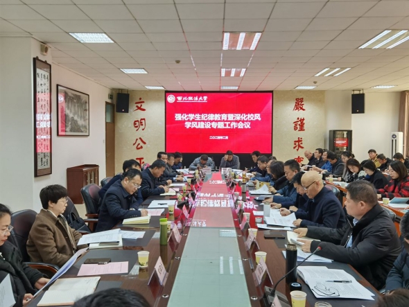 為進一步落實立德樹人根本任務(wù),強化學(xué)生紀律教育,優(yōu)化校風(fēng)學(xué)風(fēng)建設(shè)工作,深入推進本科教育教學(xué)評估工作提效增質(zhì),近日,強化學(xué)生紀律教育暨深化校風(fēng)學(xué)風(fēng)建設(shè)專題工作會議在西北政法大學(xué)舉行。
