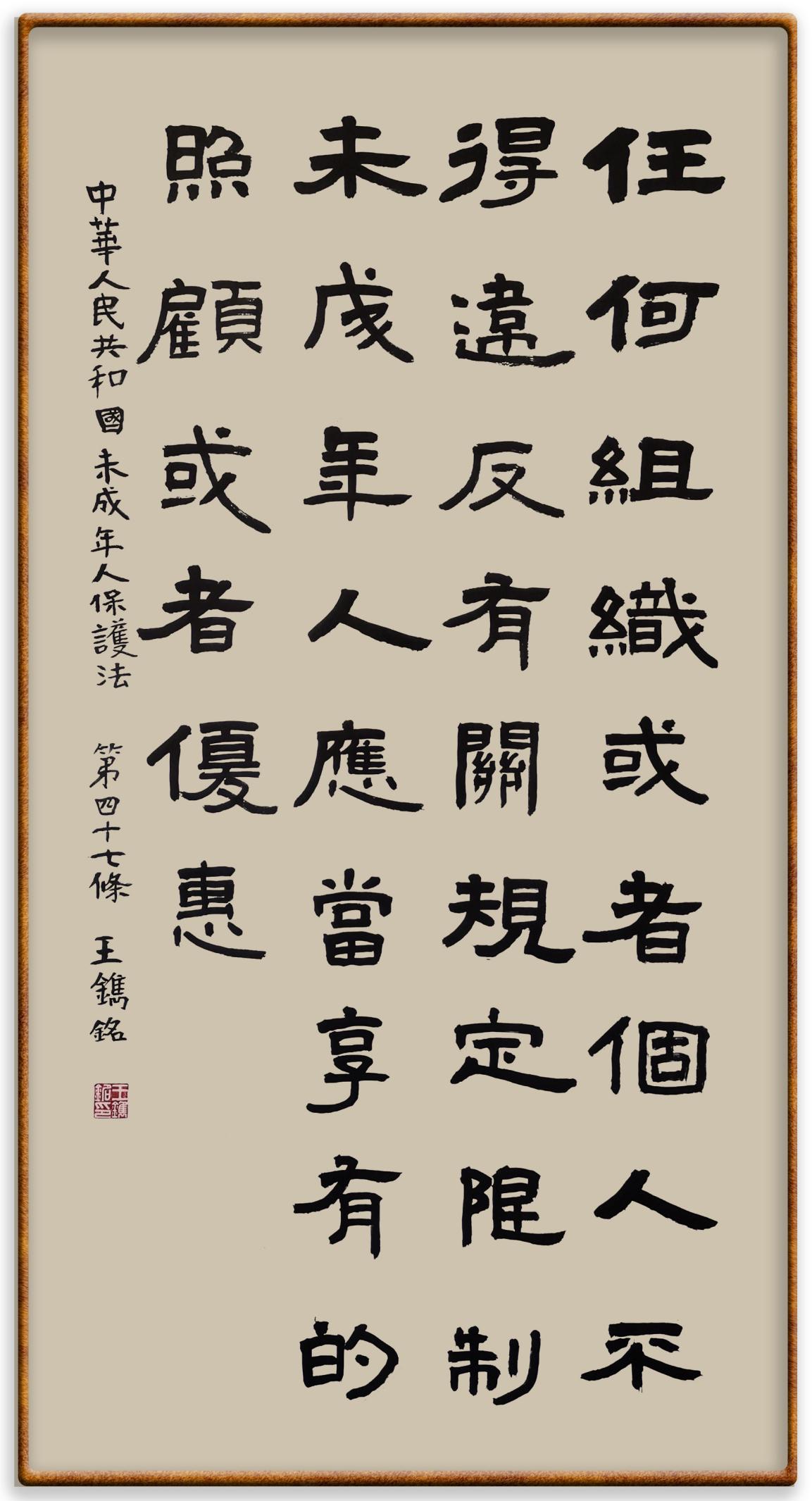 “六一”國際兒童節(jié)來臨之際,法制日報社聯(lián)合(全國)教育書畫協(xié)會基礎(chǔ)書法教育分會,推出“‘書·法’系列活動之書寫《中華人民共和國未成年人保護法》活動”,邀請小朋友書寫部分法條,讓孩子們在濃濃的節(jié)日氛圍中感受傳統(tǒng)文化的獨特魅力。