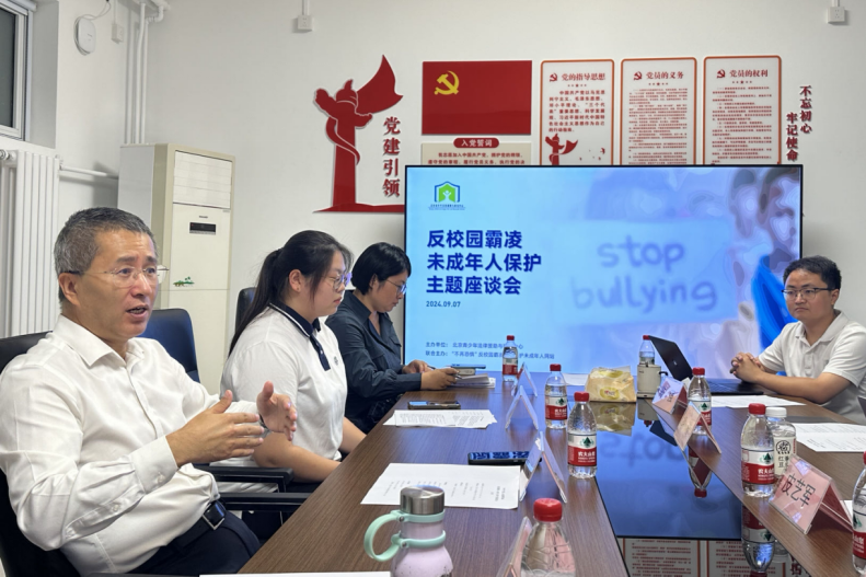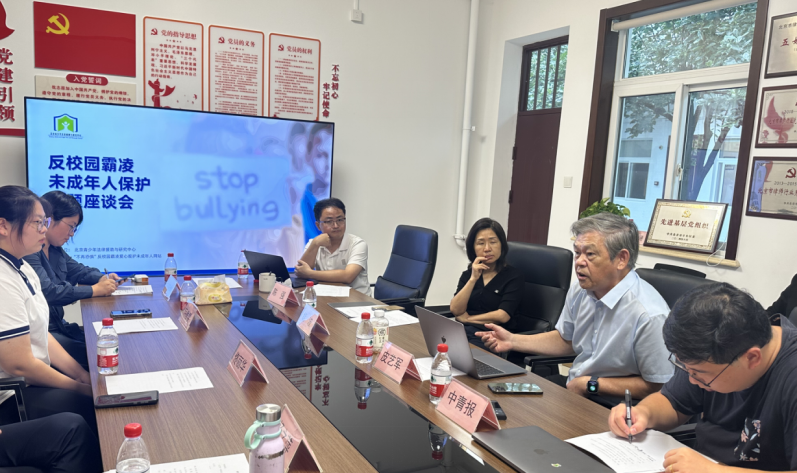 9月7日,以“反校園霸凌 未成年人保護”為主題的座談會在北京青少年法律援助與研究中心舉辦。法學(xué)專家、法律援助律師、心理專家、學(xué)生與家長代表們圍繞校園霸凌行為的危害性、法律救濟的理論與實踐,深入交流研討,集實招、謀良策,引導(dǎo)社會各界共同守護青春校園與未成年人健康成長。