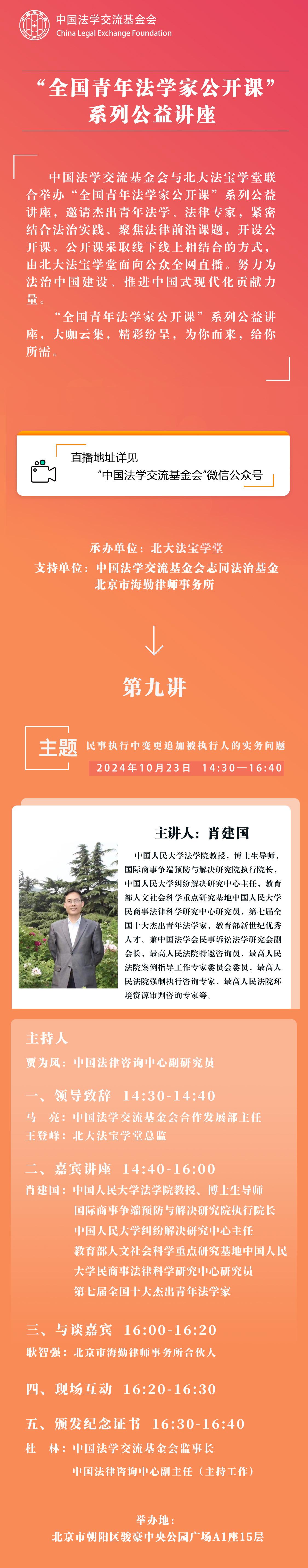 預(yù)告|肖建國教授主講“全國青年法學家公開課”系列公益講座第九講