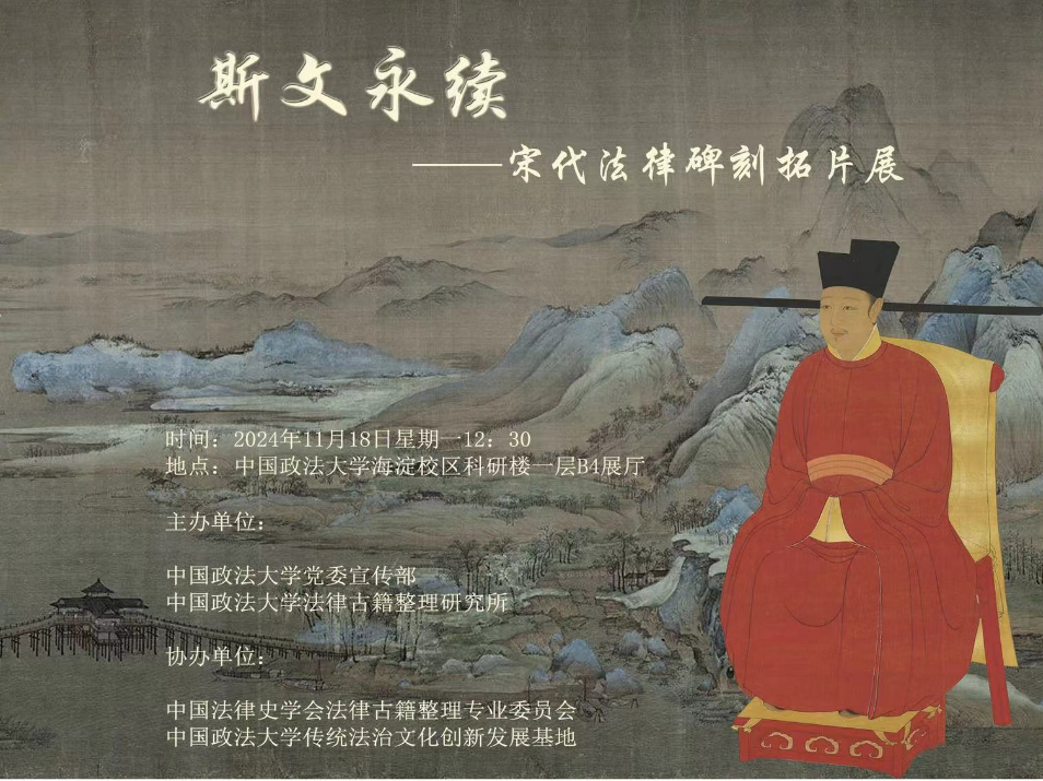 2024年11月18日,“斯文永續(xù)——宋代法律碑刻拓片展”在中國政法大學(xué)海淀校區(qū)開幕。本次展覽由中國政法大學(xué)黨委宣傳部、中國政法大學(xué)法律古籍整理研究所主辦,中國法律史學(xué)會法律古籍整理專業(yè)委員會、中國政法大學(xué)傳統(tǒng)法治文化創(chuàng)新發(fā)展基地協(xié)辦。這是自2017年以來中國政法大學(xué)舉辦第13場法制文物學(xué)術(shù)公益展覽。