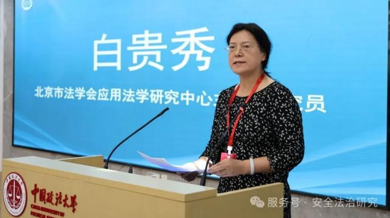 (北京市法學會應用法學研究中心主任白貴秀致辭)