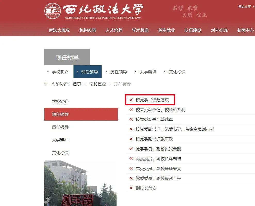 近日,根據(jù)西北政法大學(xué)官網(wǎng)發(fā)布的更新顯示,此前擔(dān)任咸陽(yáng)師范學(xué)院黨委書(shū)記的趙萬(wàn)東,已調(diào)任西北政法大學(xué)黨委書(shū)記。