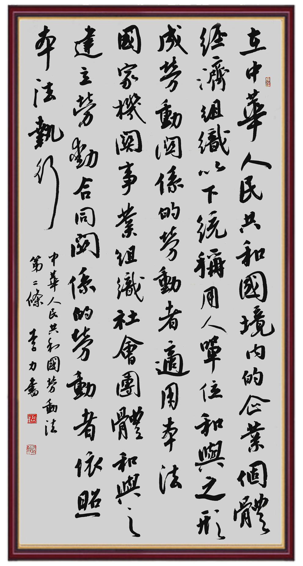 法律,是勞動(dòng)者披荊斬棘的鎧甲;書法,是法治精神薪火相傳的載體。