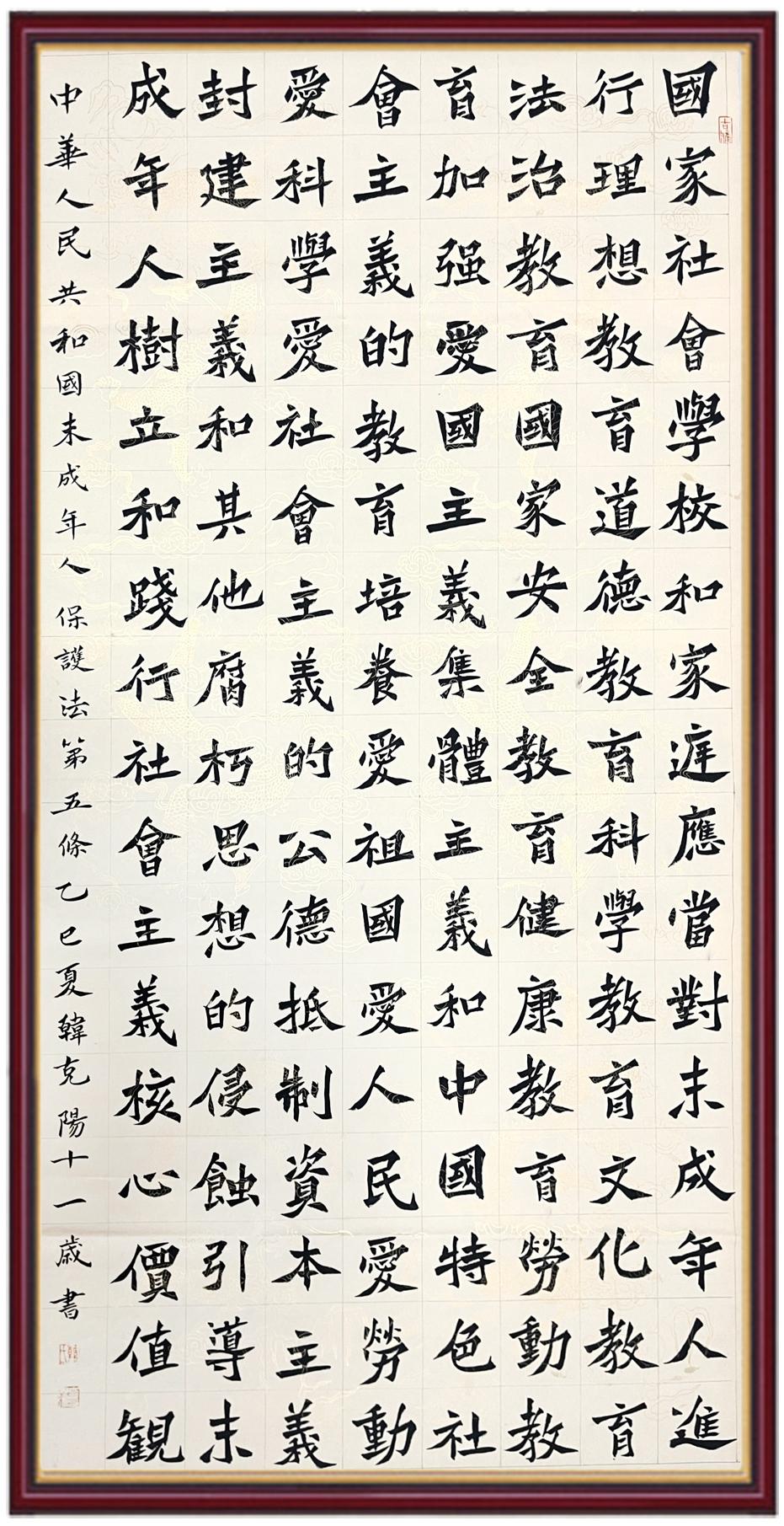 “六一”國際兒童節(jié)來臨之際,“書·法”活動邀請小朋友們書寫《中華人民共和國未成年人保護(hù)法》。一筆一畫寫未來,一字一句守純真!