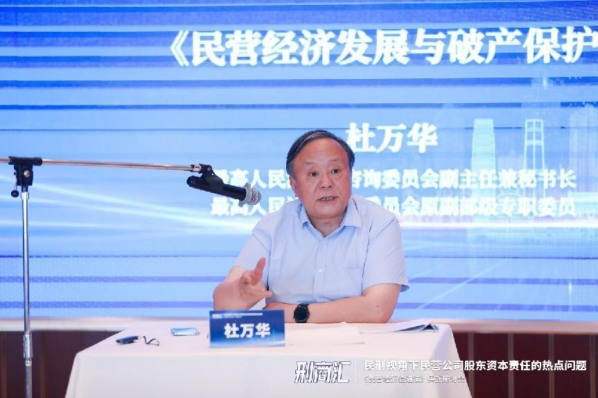 最高人民法院原副部級(jí)專職委員杜萬華聚焦民營經(jīng)濟(jì)發(fā)展與破產(chǎn)保護(hù)主題,以《民營經(jīng)濟(jì)發(fā)展與破產(chǎn)保護(hù)》為題,闡述破產(chǎn)制度作為市場經(jīng)濟(jì)基礎(chǔ)制度的定位,建議通過破產(chǎn)保護(hù)推動(dòng)庭外重組等制度,優(yōu)化生產(chǎn)要素配置。