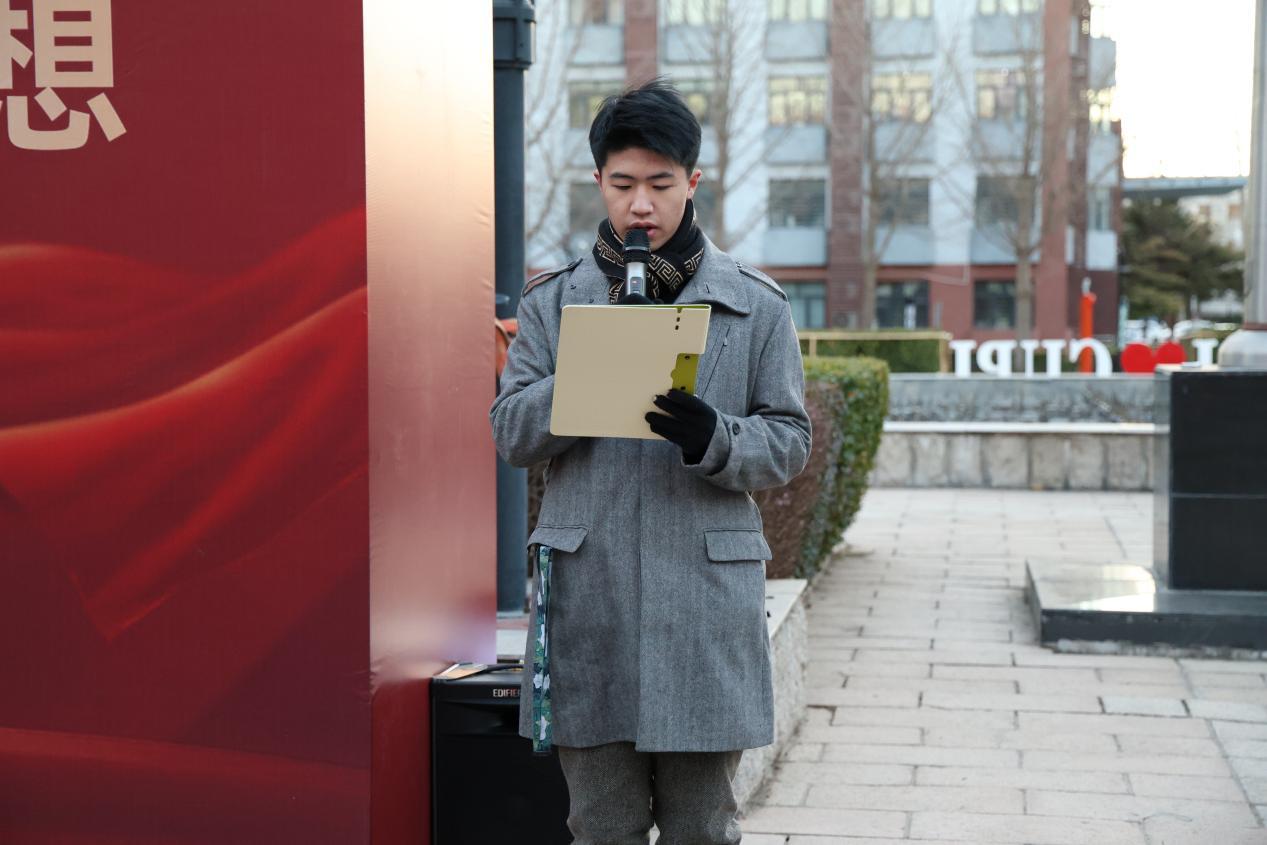 早風(fēng)吹拂,稍感涼意,而師生代表們學(xué)習(xí)、宣傳憲法的熱情卻仍是經(jīng)久不息。在主持人的帶領(lǐng)下,全體師生代表共同誦讀憲法章節(jié)。清朗的聲音在端升廣場間回蕩,如同一句句莊嚴(yán)承諾,清晰地展現(xiàn)了法大青年堅定于“學(xué)憲法、講憲法、守憲法”的拳拳之心。