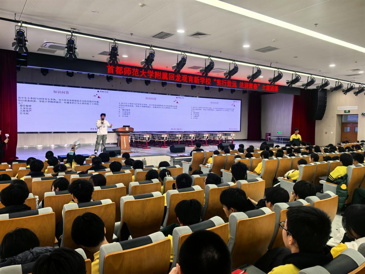 首都師范大學(xué)附屬回龍觀育新學(xué)校“憲行致遠(yuǎn) 法潤青春”主題團(tuán)課到場師生近500人。