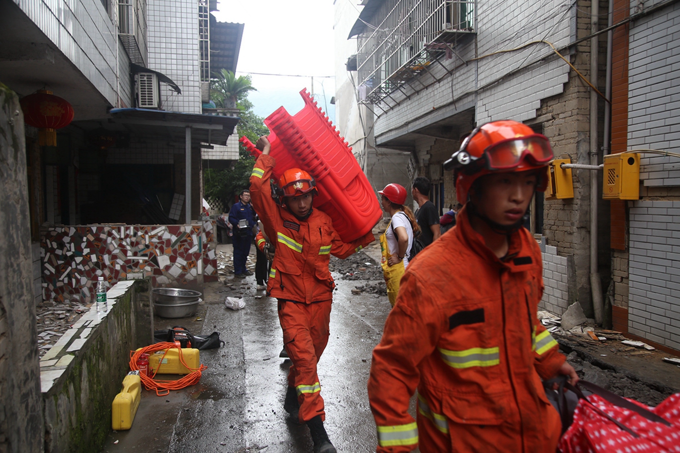 地震發(fā)生后,這個(gè)總隊(duì)連夜趕赴震中,兵分多路深入受災(zāi)區(qū)長(zhǎng)寧縣雙河鎮(zhèn)、珙縣巡場(chǎng)鎮(zhèn)等重點(diǎn)受災(zāi)鄉(xiāng)鎮(zhèn)進(jìn)行排危巡查,并冒著余震危險(xiǎn)在殘?jiān)珨啾诘奈7恐袔椭罕娹D(zhuǎn)移物資財(cái)產(chǎn),為群眾搭建帳篷,做好救災(zāi)物資搬送和前送等救援救助工作。
