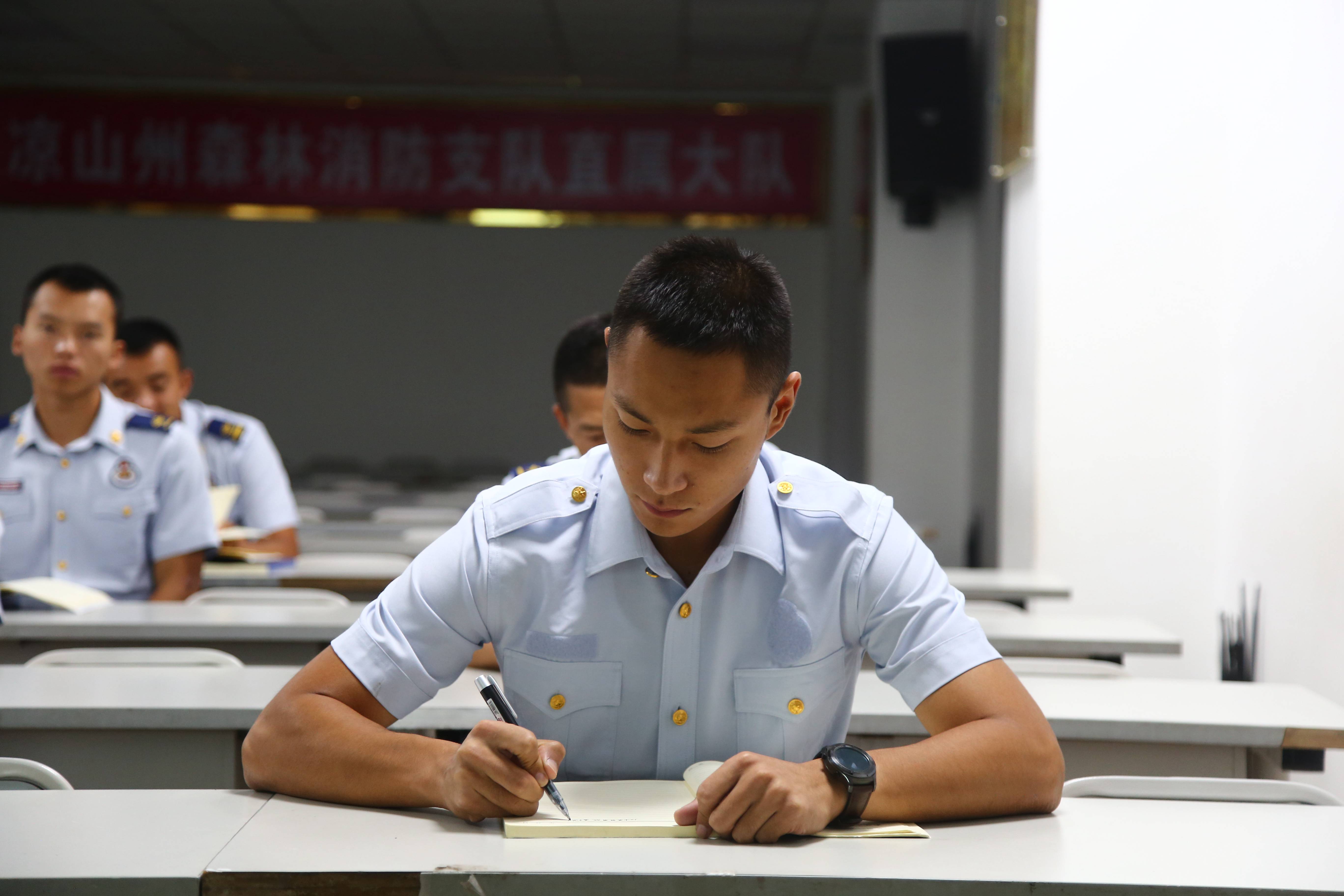 在新中國成立70周年這個特殊的日子,崗位實習正好“滿月”。這一天,他們守在電視機前,看到四川森林消防總隊消防員侯正超和其他消防指戰(zhàn)員代表在“眾志成城”彩車上向全國人民敬禮時,眼里滿是驕傲和自豪。“太震撼了!”看到祖國越來越強大,田祥由衷贊嘆。睡覺前,他寫了“不忘入隊初心,牢記職責使命,繼續(xù)前進”在筆記本上。