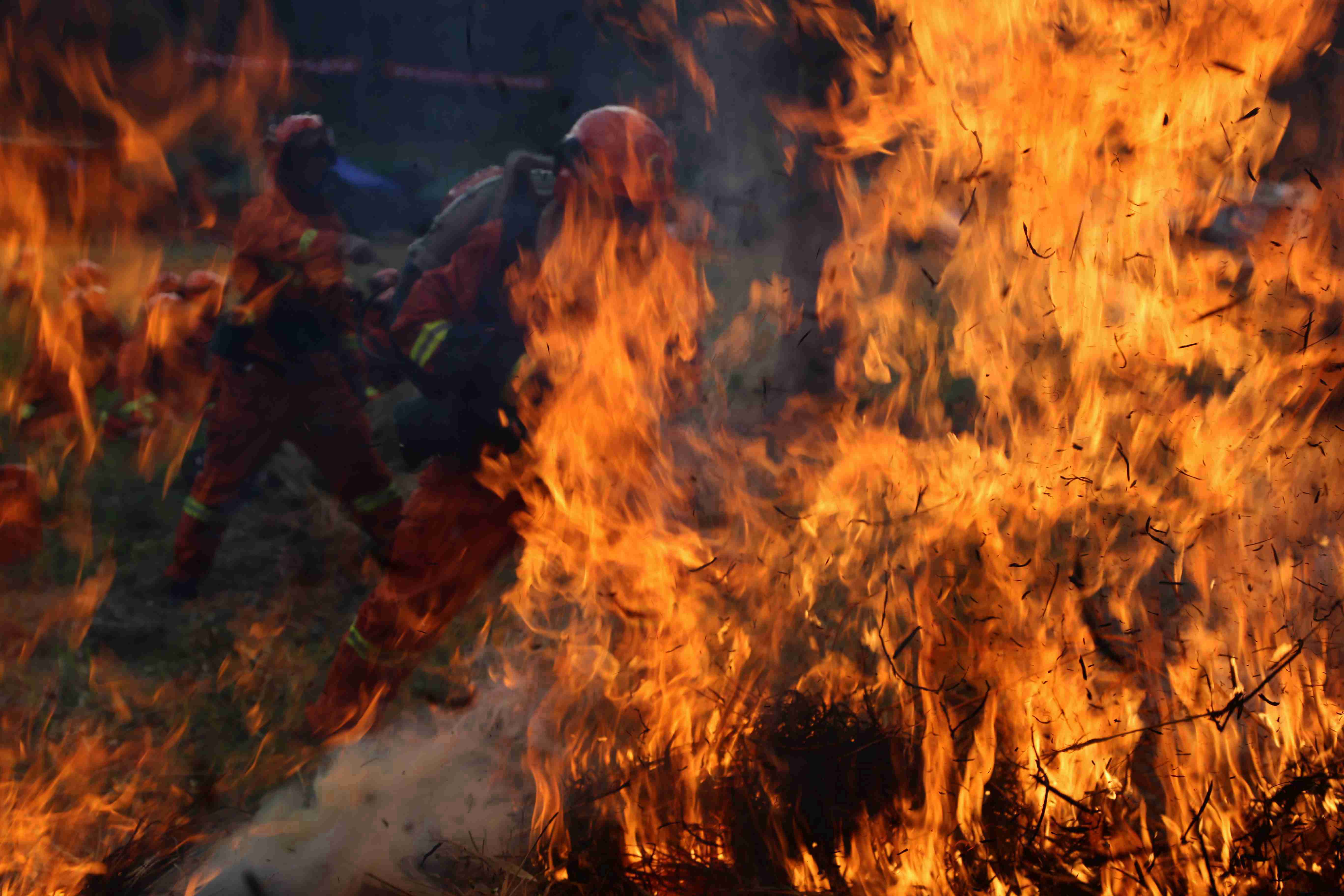火燒了起來,加斯伍各看到中隊長“開始”的手勢,帶頭沖了上去,與灼熱的氣浪剛打了個照面,他本能地后退了幾步,但一想到老隊員都在身后看著,這個要強(qiáng)的彝族小伙不服輸?shù)哪枪蓜乓幌戮蜕蟻砹?,揮舞著手中的風(fēng)機(jī)與火魔斗了起來。