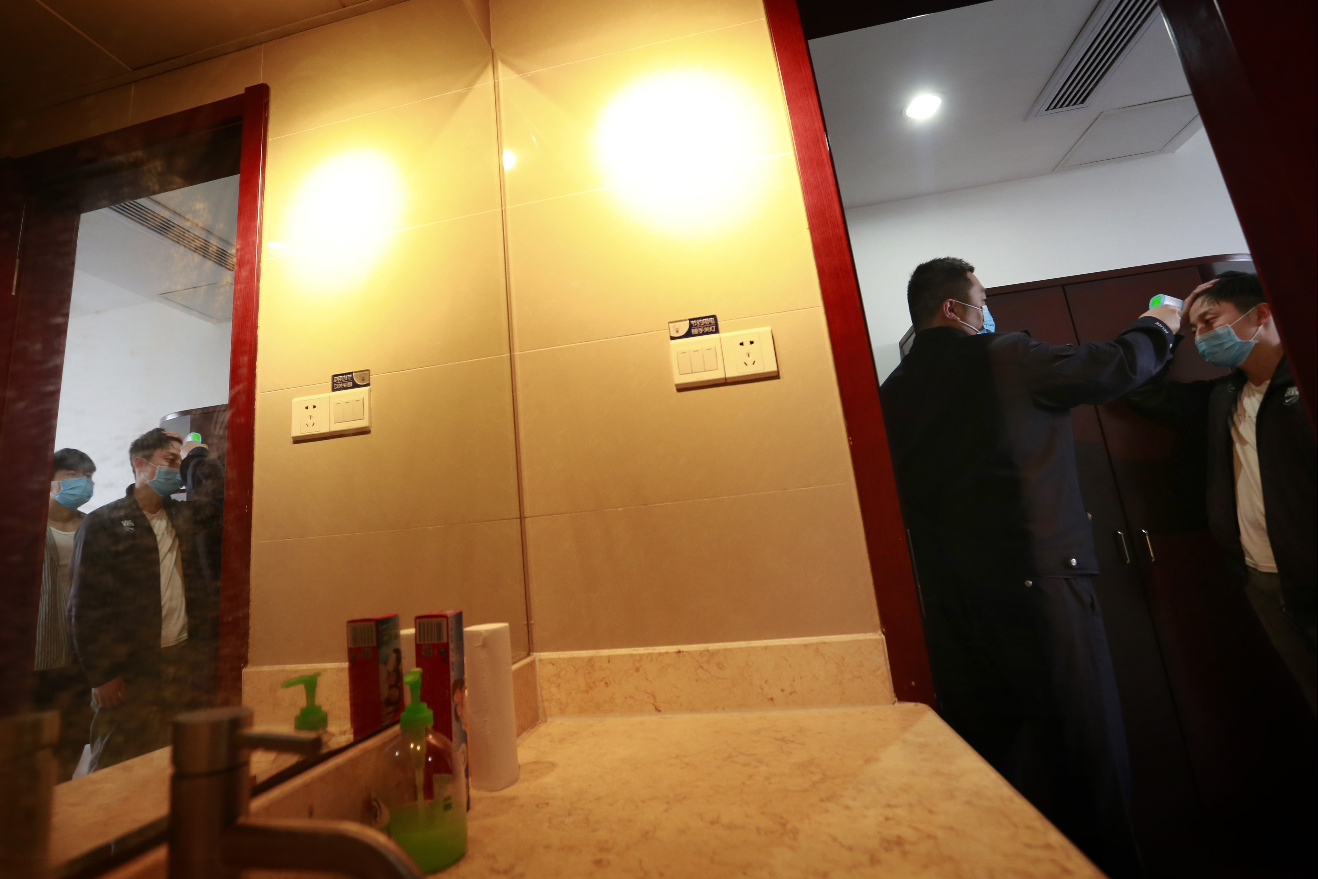 4月19日,第二批廣西來寧的6名務(wù)工村民來到南京港出入境邊防檢查站隔離點(diǎn),第一件事就是測量體溫,他們將在這里度過14天的隔離觀察。