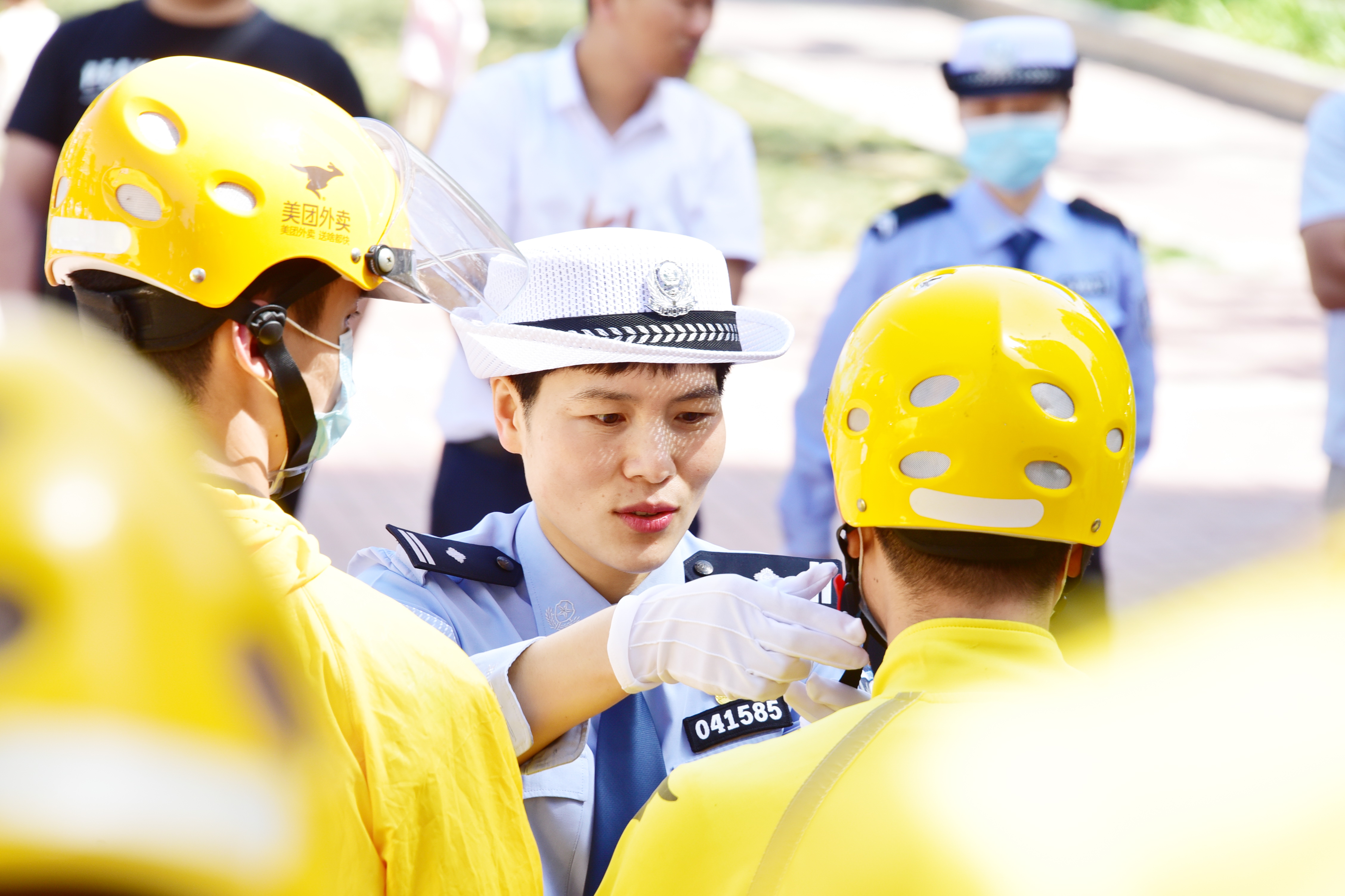 5月18日,安徽省阜南縣交警在向一外賣人員講解如何正確佩戴頭盔。為提升摩托車、電動(dòng)自行車騎乘人員安全意識(shí),當(dāng)日,阜南縣公安局交警大隊(duì)按照公安部交通管理局部署在全國(guó)開展“一盔一帶”安全守護(hù)行動(dòng)部署,聯(lián)合外賣公司開展“一盔一帶”示范活動(dòng),民警通過(guò)現(xiàn)場(chǎng)講解和演示正確佩戴頭盔安全駕駛的重要性,增強(qiáng)外賣人員出行安全意識(shí)。