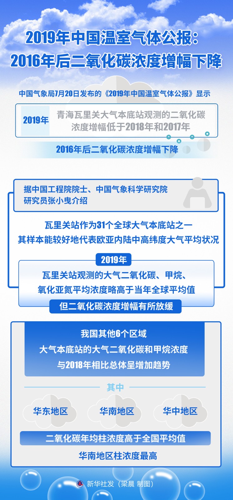 圖表:2019年中國溫室氣體公報:2016年后二氧化碳濃度增幅下降