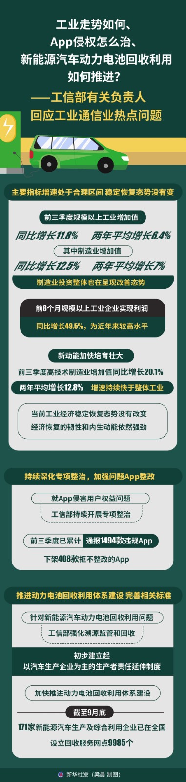 圖表:工業(yè)走勢如何、App侵權(quán)怎么治、新能源汽車動(dòng)力電池回收利用如何推進(jìn)?——工信部有關(guān)負(fù)責(zé)人回應(yīng)工業(yè)通信業(yè)熱點(diǎn)問題