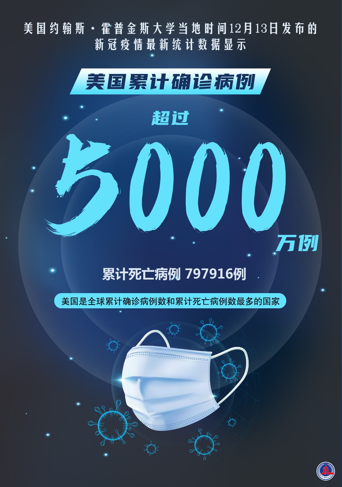 海報:約翰斯·霍普金斯大學:美國累計新冠確診病例超5000萬例