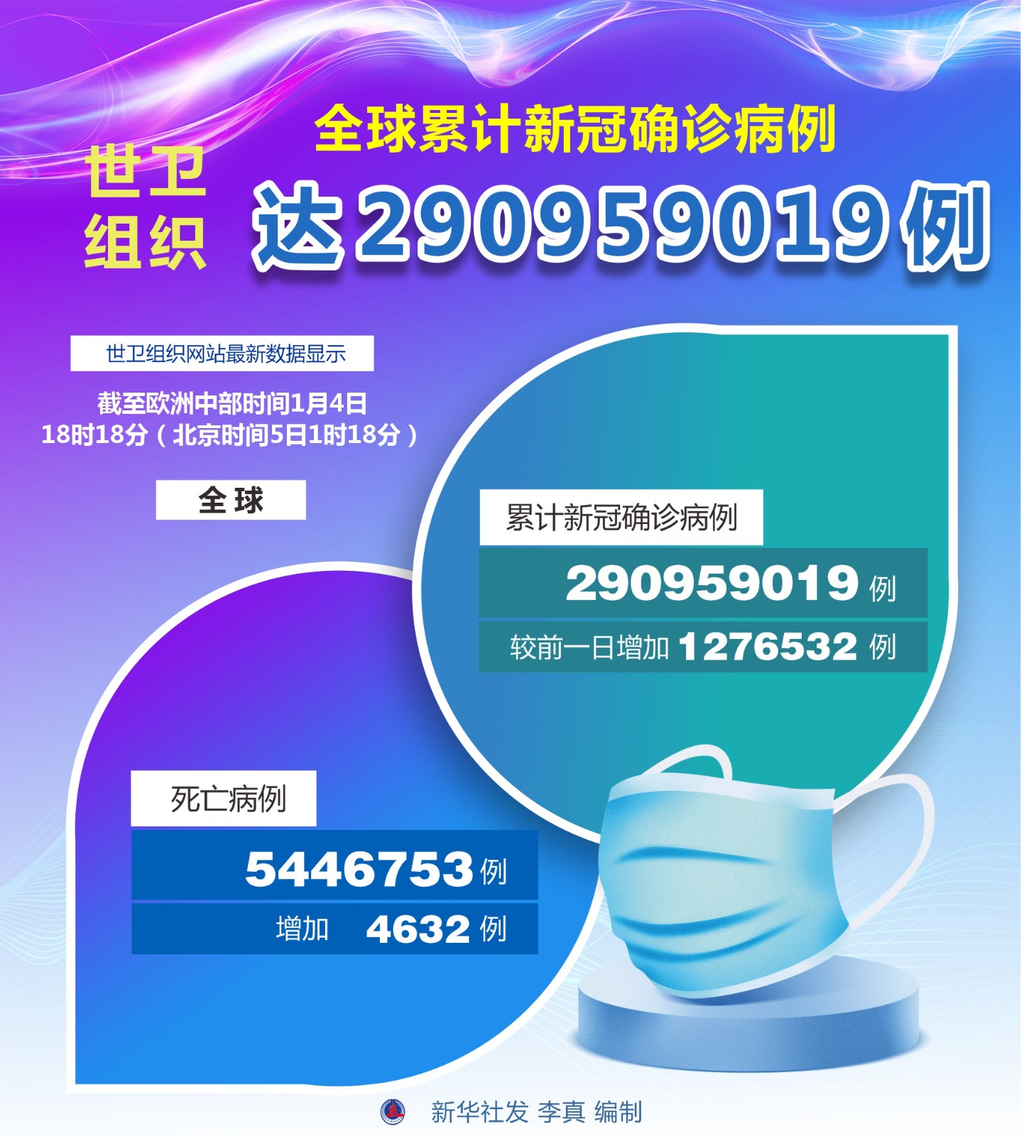 世界衛(wèi)生組織1月4日公布的最新數(shù)據(jù)顯示,全球累計新冠確診病例達290959019例。