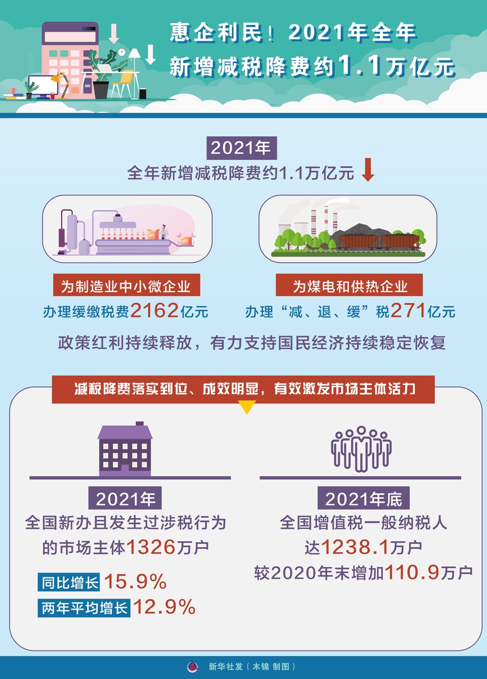 圖表:惠企利民!2021年全年新增減稅降費(fèi)約1.1萬億元