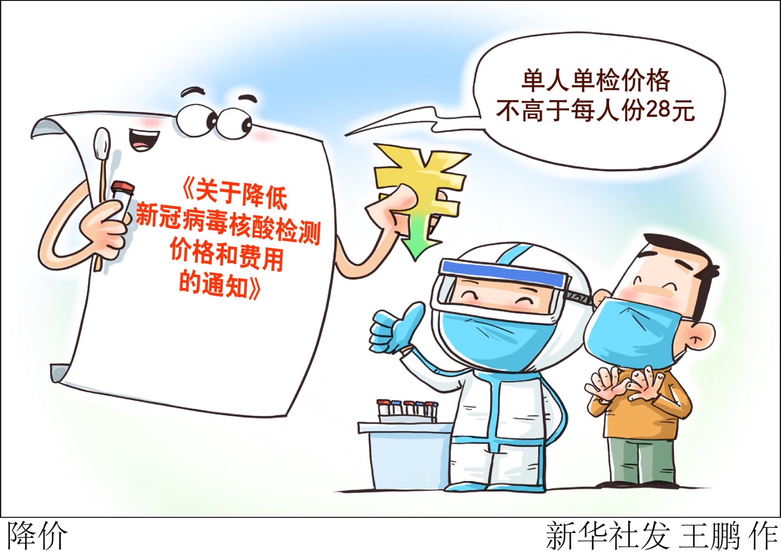 為適應(yīng)新冠病毒肺炎疫情防控的形勢變化,降低大規(guī)模核酸篩查和高頻率檢測的成本,國家醫(yī)療保障局辦公室、國務(wù)院應(yīng)對新型冠狀病毒肺炎疫情聯(lián)防聯(lián)控機(jī)制醫(yī)療救治組4月2日聯(lián)合印發(fā)《關(guān)于降低新冠病毒核酸檢測價(jià)格和費(fèi)用的通知》,明確單人單檢降至不高于每人份28元、多人混檢統(tǒng)一降至每人份不高于8元。
