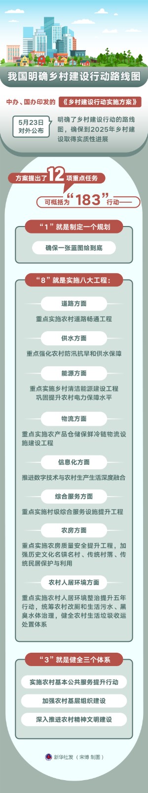 中辦、國辦印發(fā)的《鄉(xiāng)村建設(shè)行動實施方案》5月23日對外公布,明確了鄉(xiāng)村建設(shè)行動的路線圖,確保到2025年鄉(xiāng)村建設(shè)取得實質(zhì)性進(jìn)展,農(nóng)村人居環(huán)境持續(xù)改善,農(nóng)村公共基礎(chǔ)設(shè)施往村覆蓋、往戶延伸取得積極進(jìn)展,農(nóng)村基本公共服務(wù)水平穩(wěn)步提升,農(nóng)村精神文明建設(shè)顯著加強(qiáng)。