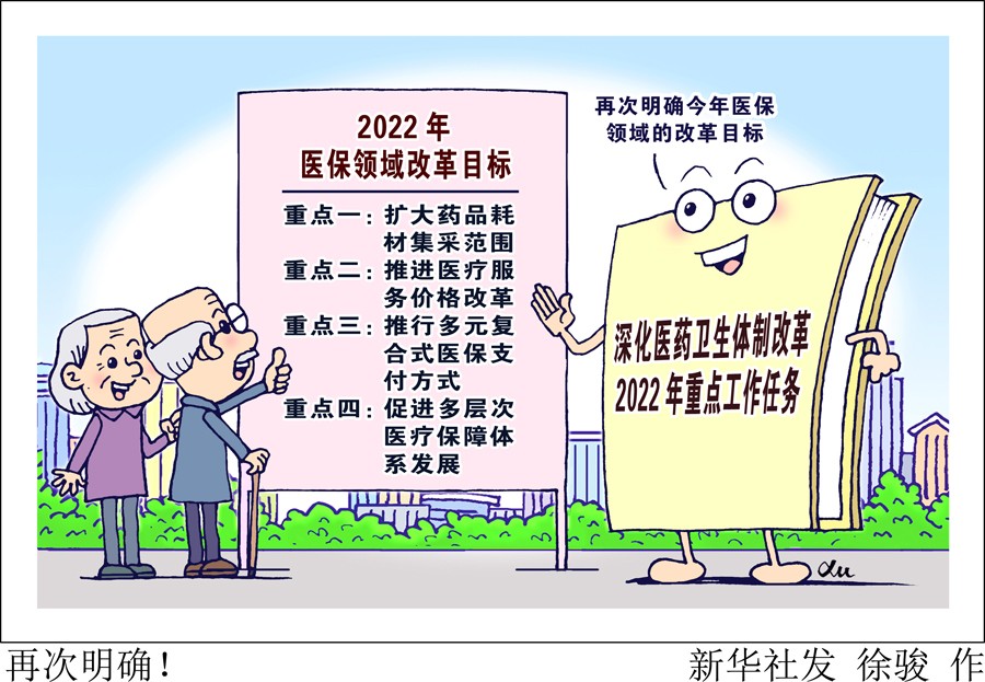 擴(kuò)大藥品耗材集采范圍、調(diào)整醫(yī)療服務(wù)價(jià)格、進(jìn)一步擴(kuò)大門診費(fèi)用跨省直接結(jié)算……日前,國(guó)務(wù)院辦公廳印發(fā)《深化醫(yī)藥衛(wèi)生體制改革2022年重點(diǎn)工作任務(wù)》,再次明確今年醫(yī)保領(lǐng)域的改革目標(biāo)。