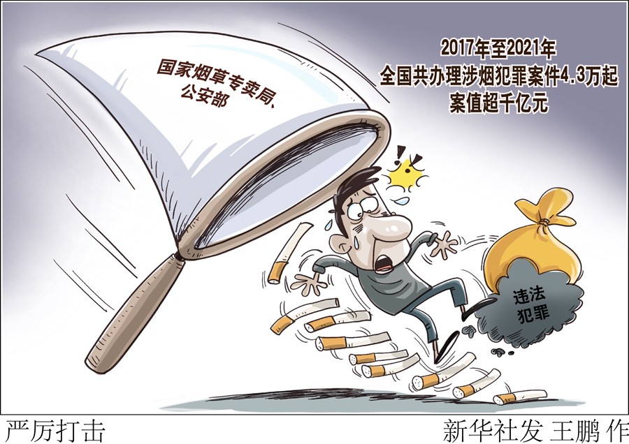 2017年至2021年,全國共辦理涉煙犯罪案件4.3萬起,查獲假煙210萬件、煙絲煙葉近10萬噸,收繳制假煙機1700余臺。國家煙草專賣局、公安部聯(lián)合掛牌督辦重大案件390余起,刑事拘留4.4萬人,先后組織破獲一批案值上億元的特大案件,為國家挽回經(jīng)濟損失超千億元。