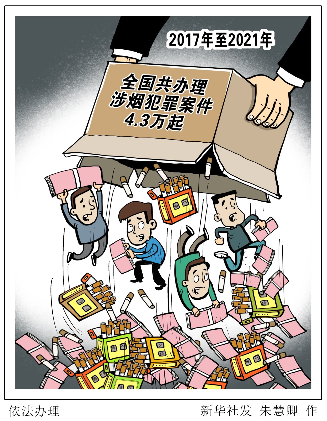 2017年至2021年,全國共辦理涉煙犯罪案件4.3萬起,查獲假煙210萬件、煙絲煙葉近10萬噸,收繳制假煙機(jī)1700余臺。國家煙草專賣局、公安部聯(lián)合掛牌督辦重大案件390余起,刑事拘留4.4萬人,先后組織破獲一批案值上億元的特大案件,為國家挽回經(jīng)濟(jì)損失超千億元。