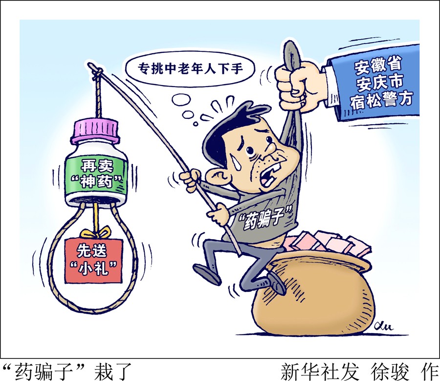評書機(jī)、老人鞋等“小禮”請先笑納,“包治百病”的“神藥”快來試試?小心“騙你沒商量”!記者日前從安徽省安慶市宿松縣公安局了解到,當(dāng)?shù)鼐酱虻粢粋€(gè)向中老年群體虛假宣傳兜售藥品進(jìn)行詐騙的犯罪團(tuán)伙,全國多地?cái)?shù)千人上當(dāng),涉案金額近千萬元。