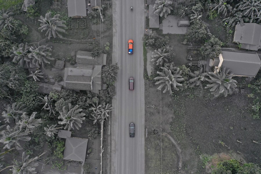 6月5日,菲律賓索索貢省的一個城鎮(zhèn)被布盧?;鹕絿姲l(fā)的火山灰覆蓋(無人機照片)。