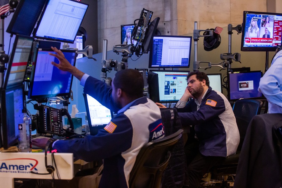 6月13日,交易員在美國紐約證券交易所工作。