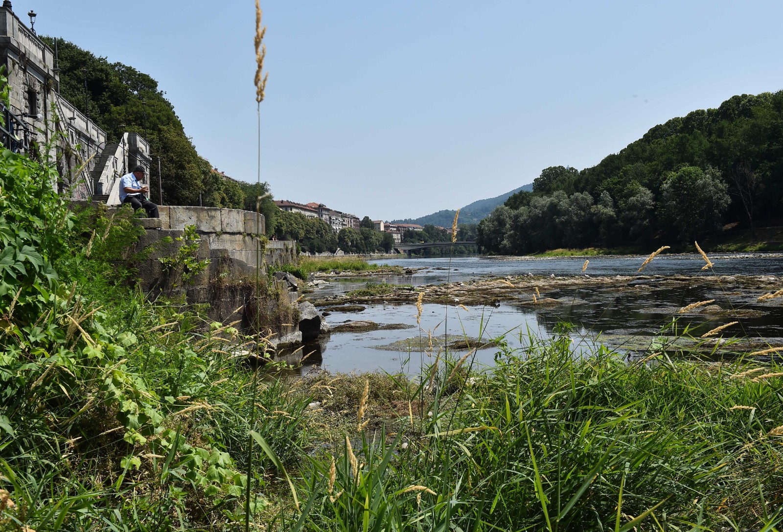 6月18日,一名男子坐在意大利都靈的波河岸邊。