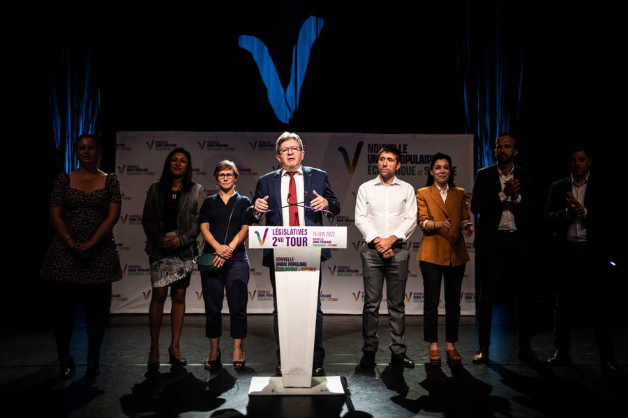 6月19日,法國極左翼政黨“不屈法國”領(lǐng)導(dǎo)人梅朗雄在巴黎舉行的選后集會(huì)上講話。