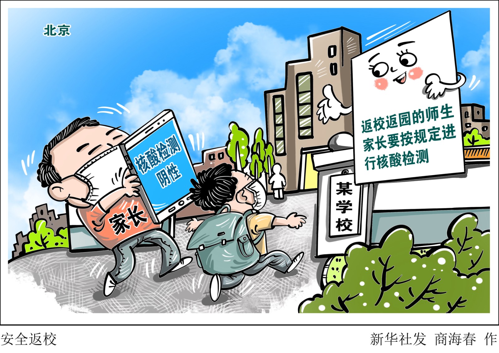 在6月26日北京市新型冠狀病毒肺炎疫情防控工作新聞發(fā)布會(huì)上,北京市委宣傳部副部長、市政府新聞辦主任、市政府新聞發(fā)言人徐和建提示,家長要時(shí)刻關(guān)注孩子的健康狀況,及時(shí)完成返校前學(xué)生的核酸檢測,確保平安健康返校。師生和家長要按規(guī)定進(jìn)行核酸檢測,核酸檢測時(shí)應(yīng)戴好口罩、有序排隊(duì)、保持安全社交距離。