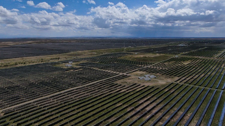 近年來,青海省海南藏族自治州依托土地資源和太陽能資源優(yōu)勢,著力推進新能源發(fā)電項目落地。截至目前,在位于共和縣的海南州綠色產(chǎn)業(yè)發(fā)展園區(qū),光伏、風電、光熱新能源裝機容量超過2000萬千瓦。按測算,通過新能源發(fā)電這里每年可節(jié)約標準煤736.96萬噸,減排二氧化碳2237.2萬噸。