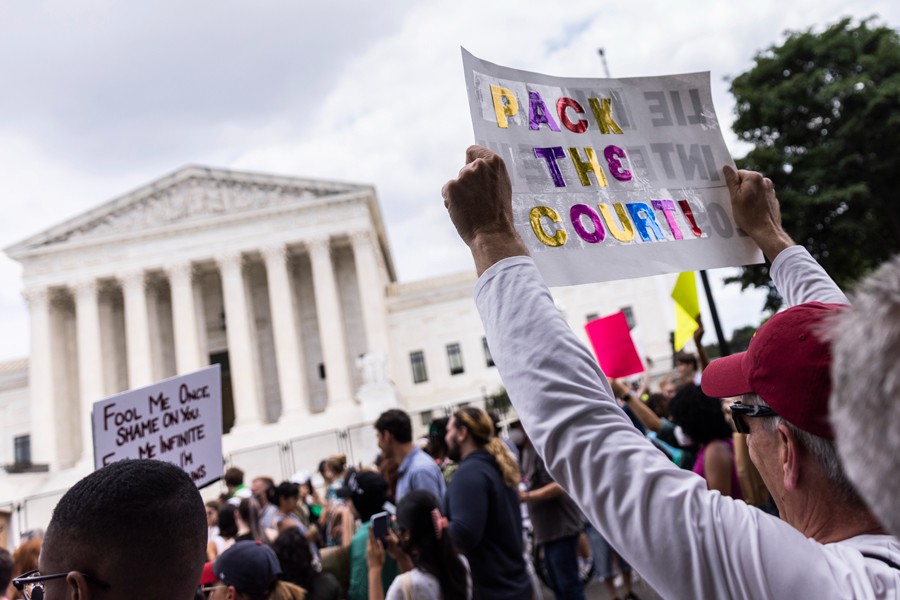 6月24日,墮胎權(quán)支持者在美國首都華盛頓的聯(lián)邦最高法院外抗議。