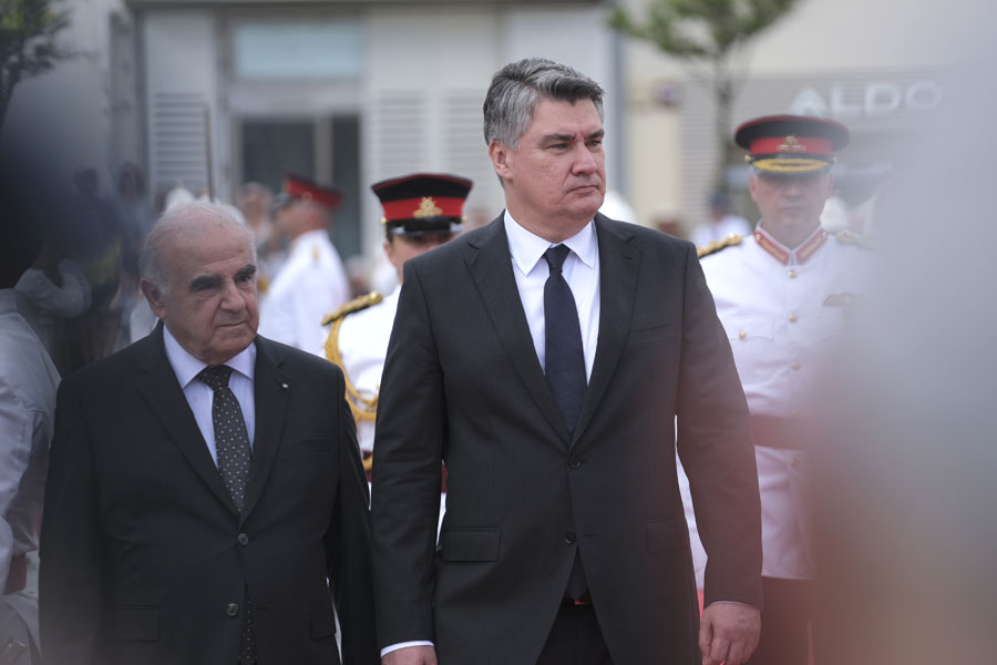 7月11日,馬耳他總統(tǒng)維拉(前左)在首都瓦萊塔歡迎到訪的克羅地亞總統(tǒng)米拉諾維奇。
