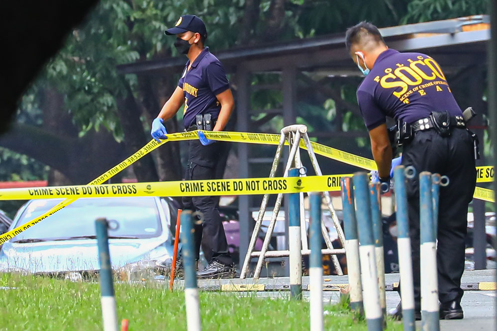 7月24日,菲律賓警察在馬尼拉大區(qū)奎松市的雅典耀大學(xué)槍擊事件現(xiàn)場工作。