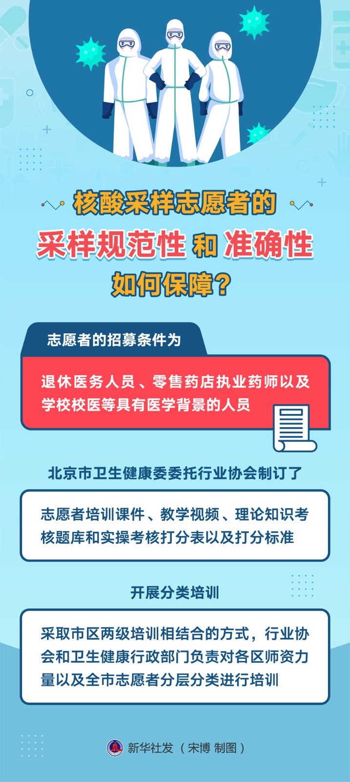 李昂表示,為確保志愿者采樣的規(guī)范性和準(zhǔn)確性,北京市衛(wèi)生健康委委托行業(yè)協(xié)會制訂了志愿者培訓(xùn)課件、教學(xué)視頻、理論知識考核題庫和實操考核打分表以及打分標(biāo)準(zhǔn),開展分類培訓(xùn),采取市區(qū)兩級培訓(xùn)相結(jié)合的方式,行業(yè)協(xié)會和衛(wèi)生健康行政部門負(fù)責(zé)對各區(qū)師資力量以及全市志愿者分層分類進(jìn)行培訓(xùn)。