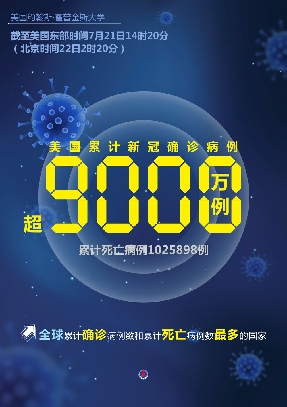 美國(guó)約翰斯·霍普金斯大學(xué)7月21日發(fā)布的新冠疫情最新統(tǒng)計(jì)數(shù)據(jù)顯示,美國(guó)累計(jì)確診病例超過(guò)9000萬(wàn)例。