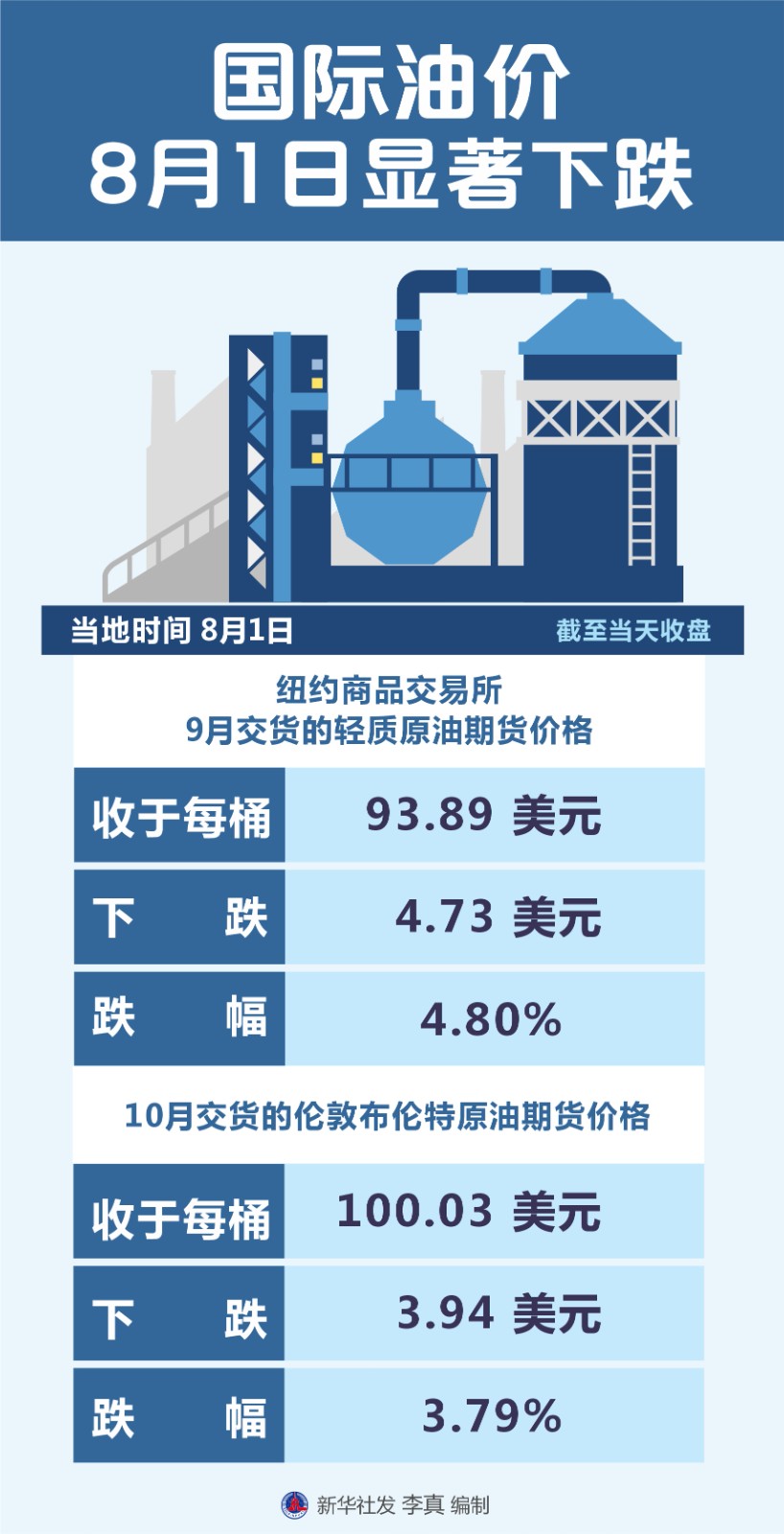 (圖表)國際油價8月1日顯著下跌