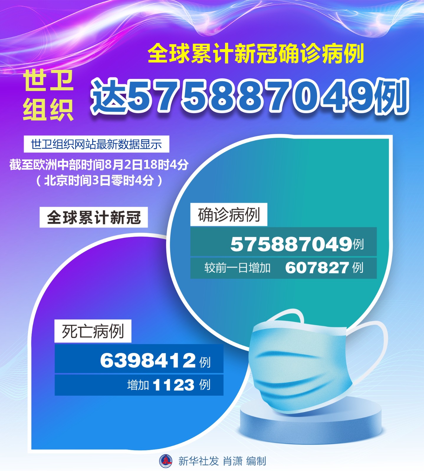(圖表)世衛(wèi)組織:全球累計新冠確診病例達575887049例
